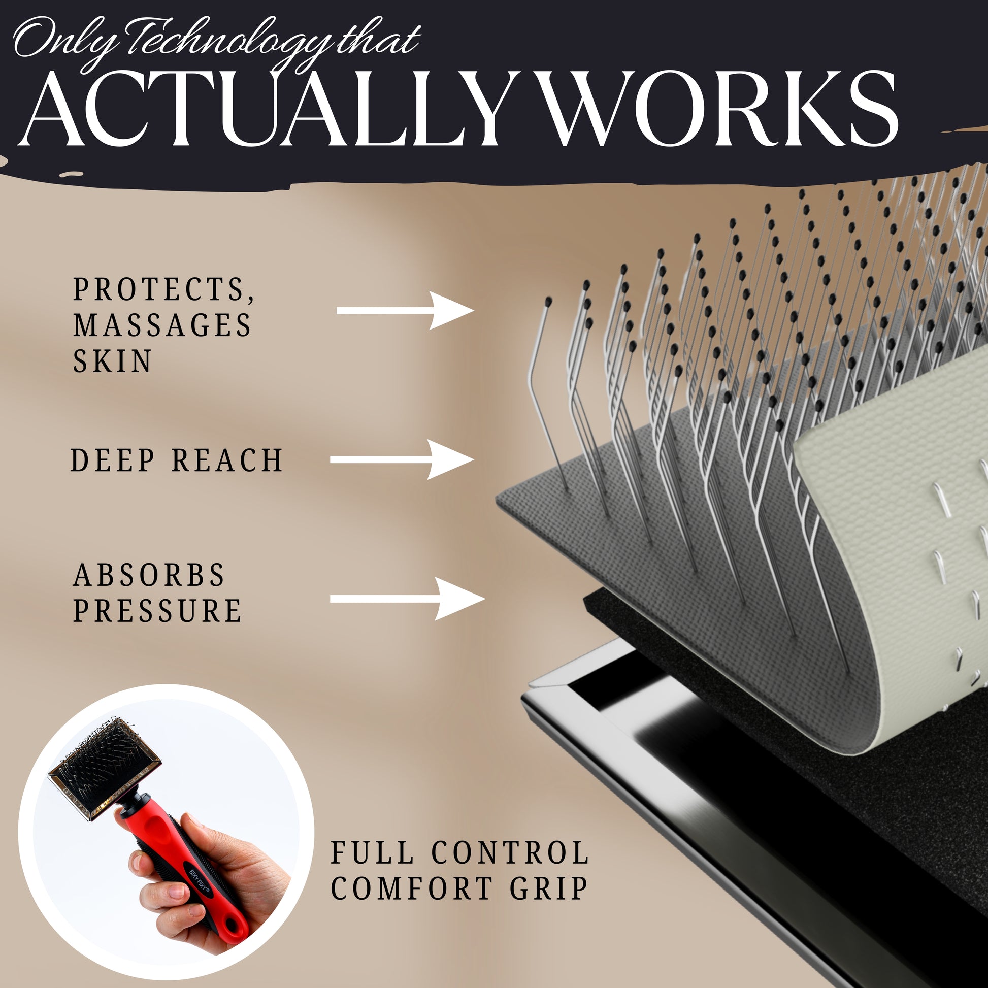 - BALL-TIPPED PINS - Gentle Detangling - Each pin is coated to protect your dogs skin while delivering serious tangle work. Cushioned pad deliver gentle detangling & deshedding & dematting with zero scratching or pulling. Protected pins safely breaks up tangles, mats, knots and hard matting while giving a relaxing massage. Even most sensitive animal tolerates this magical detangler.